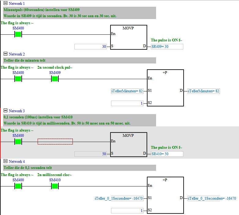 instelbaar zijn en continu ‘doorlopen’ als de PLC in RUN is.