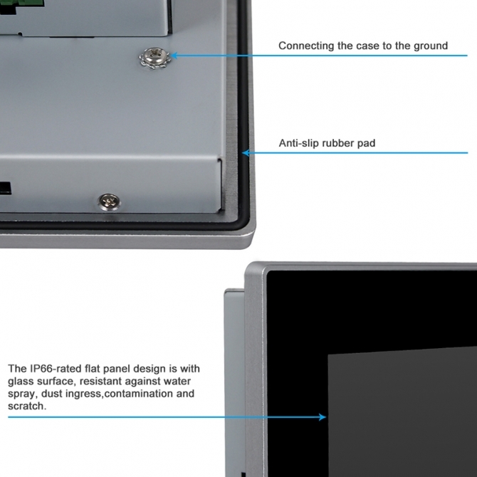 Industrielles LCD-Panel, true-flat Touchscreen mit Multi-Touch projected capacitive control.