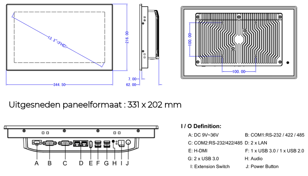 - Supports both embedded mounting and VESA 100 mm × 100 mm mounting holes