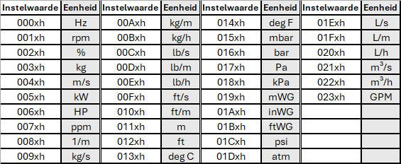 Met deze twee parameters is de invoer eenvoudig aan te passen aan de gewenste eenheid.